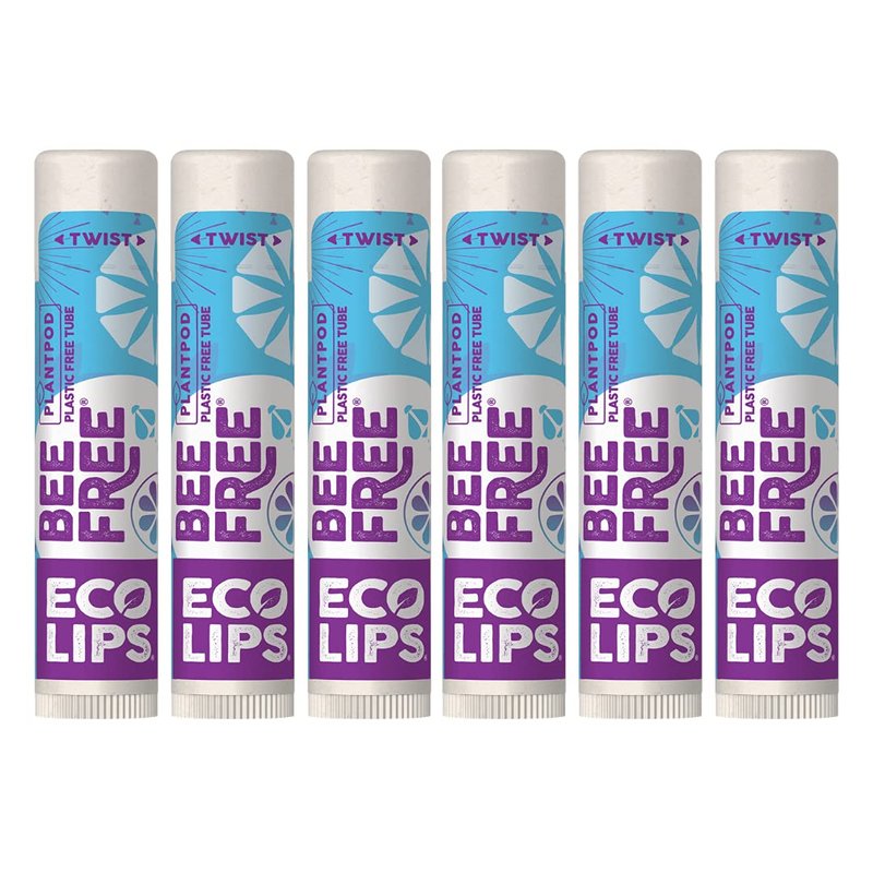 Eco Lips Bee Free Vegan Unscented 100% Natural Lip Balm - Soothe and Moisturize Dry, Cracked and Chapped Lips - 100% Plastic-Free Plant Pod Packaging - Made in USA (6 Tubes)