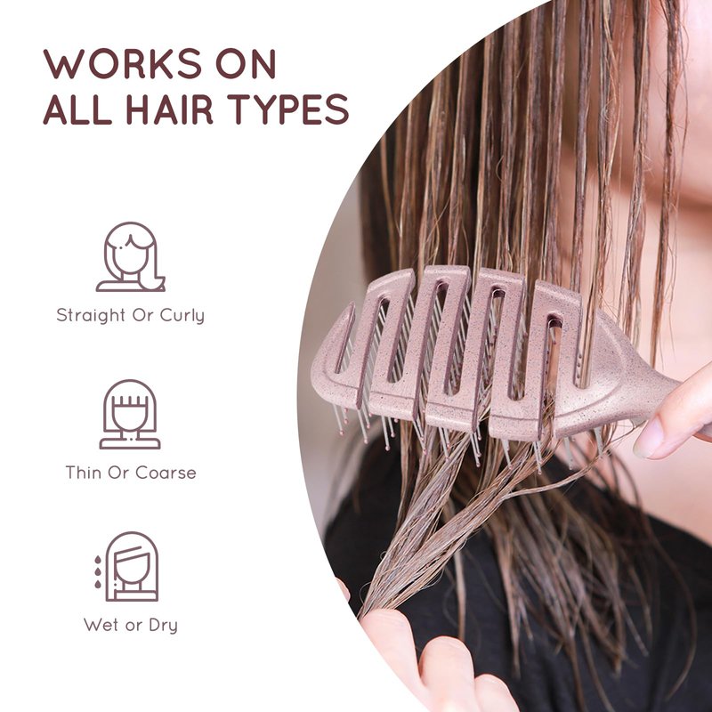 - ——Works On Various Hair Types - This brush quickly eliminates every knot and tangle whether it is used on dry or wet hair. Wavy, curly, straight, thin, thick, kinky, coily, frizzy, colored, extensions, wigs, and even pets enjoy it can all be styled with it.
