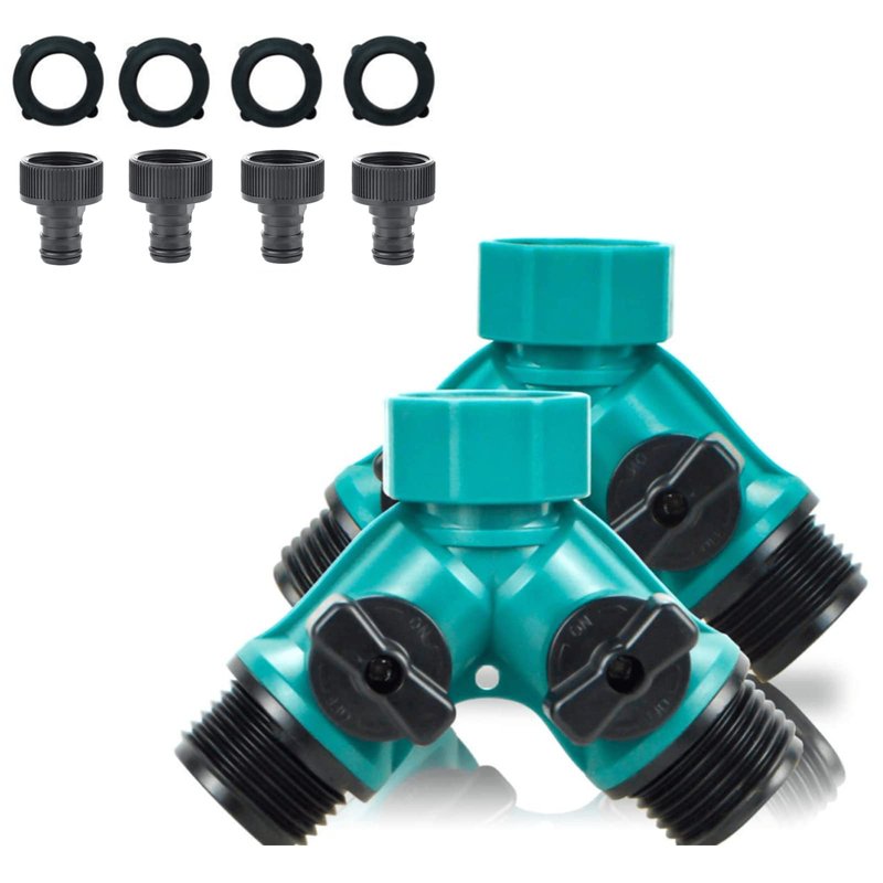 - Package information: Package including 2pcs 3/4 inch 2-way plastic water hose splitter, 4pcs hose end quick connectors, 4 washers. Perfect gardening irrigation sets.