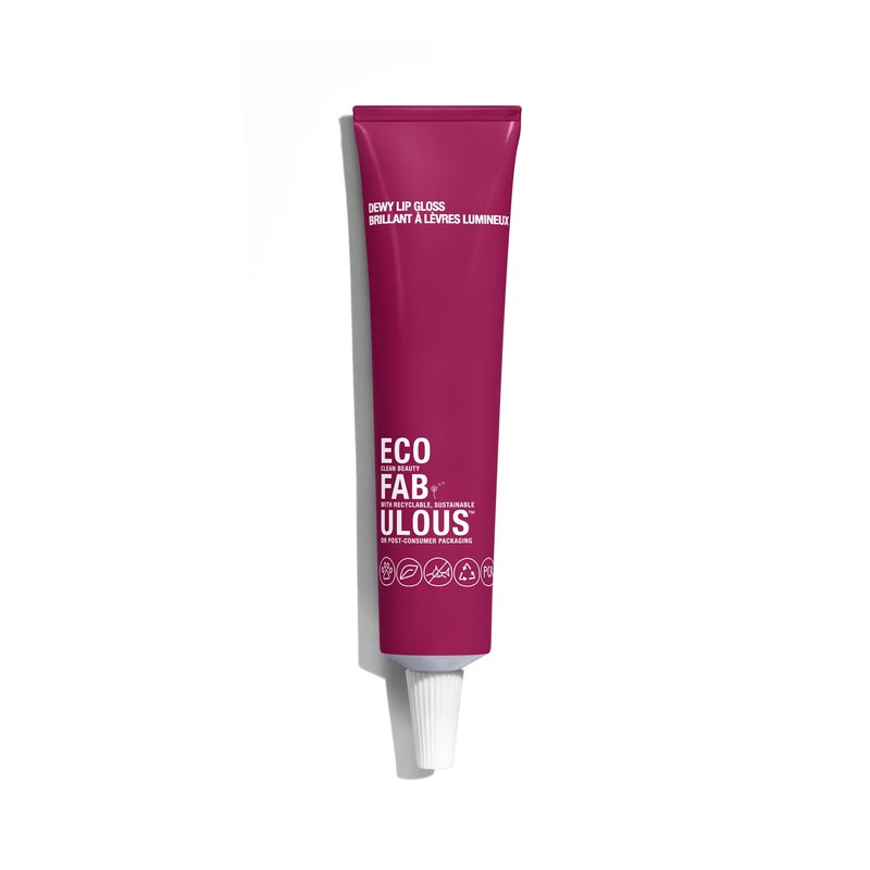 ECOFABULOUS Dewy Lip Gloss - Enriched with Squalane and Jojoba Esters, Nourishes and Conditions Lips, Clean + Recyclable + Vegan, 15 mL/ 0.5 Fl Oz - Wave Hello (Deep Violet Berry)