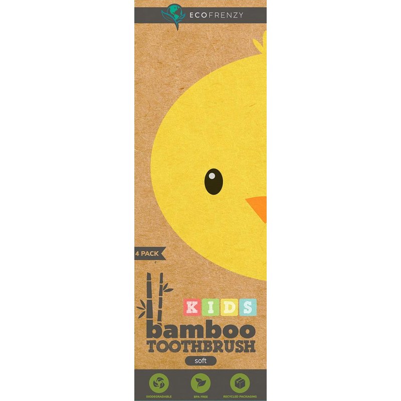 EcoFrenzy - Kids Bamboo Toothbrush - Child Size Soft BPA Free Color Safe Bristles (4 Pack)