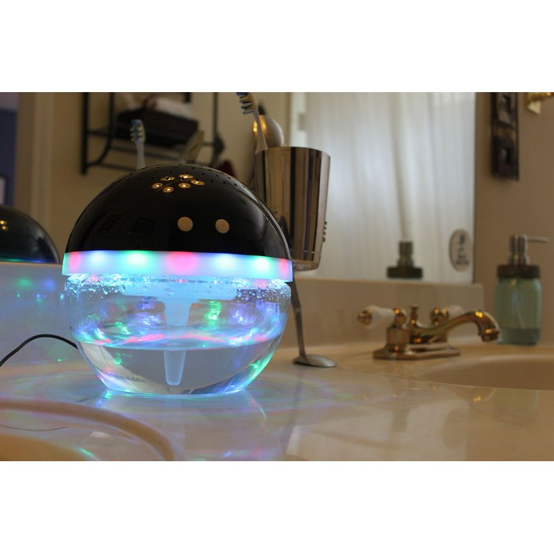 The EcoGecko Magic Ball is a powerful workhorse for neutralizing unpleasant odors in your space. Simply fill the bowl with tap water, add a few drops of the included Orange or Cinnamon oil and turn on the freshness. The unit has a fan system that sucks the air from the room into the water. The air is pushed through the aroma oil scented water, particles are trapped in the water and pleasantly scented air is released back into your room. The gently swishing water creates soothing white noise for a peaceful and restful environment. LED Lights give the unit a whimsical feel. You chose multi-color, chasing, alternating color, solid or no color at all.