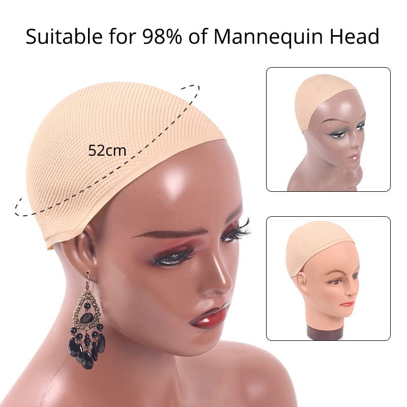 - => Color and Size: Beige, free size. Silicone Wig caps are stretchy that fit most Mannequin head size.