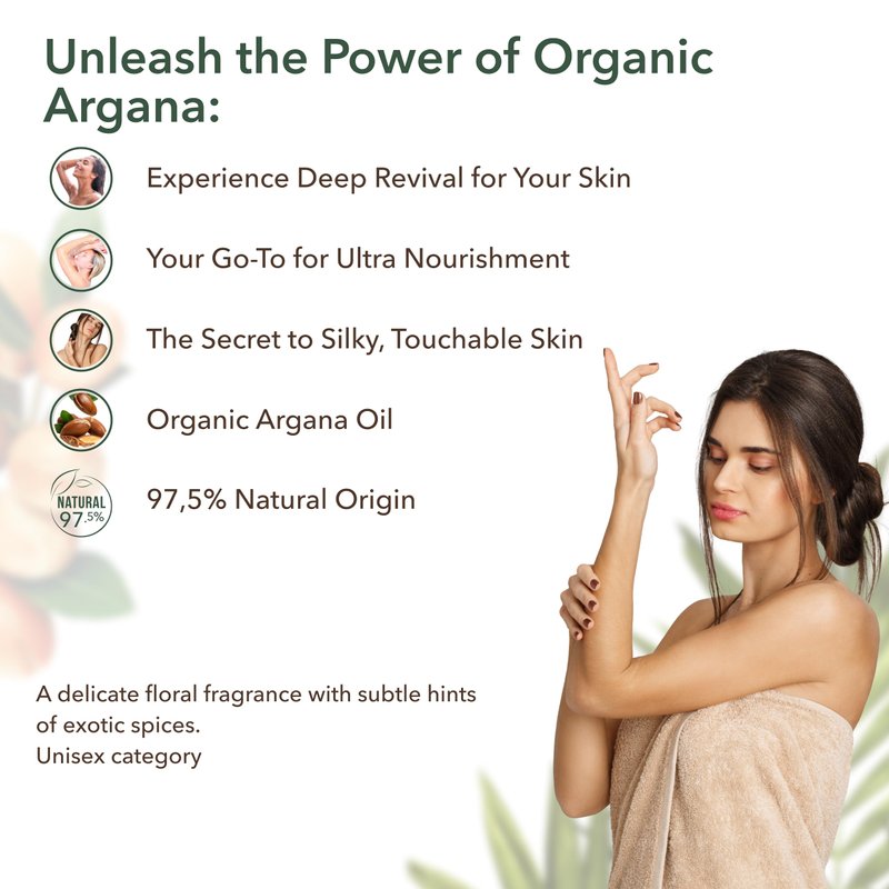 - Rich in argan oil, this body butter enhances skin elasticity, nourishes deeply, and helps slow down the aging process. Perfect for daily use, after showers, or whenever extra hydration is needed.