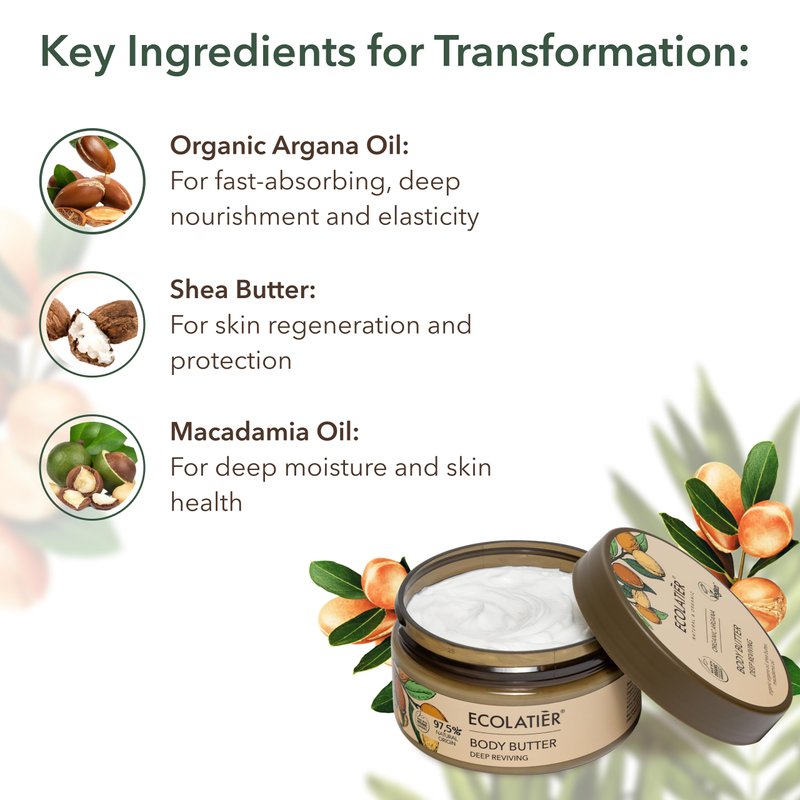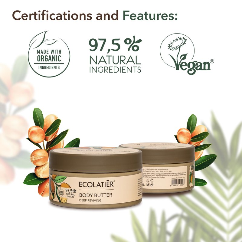 ECOLATIÈR Deep Reviving Body Butter with Organic Argan Oil – Ultra-Hydrating Whipped Body Butter for Women & Men – Nourishing, 97.5% Natural & Vegan – Perfect for Dry Skin, 6.7 Fl Oz