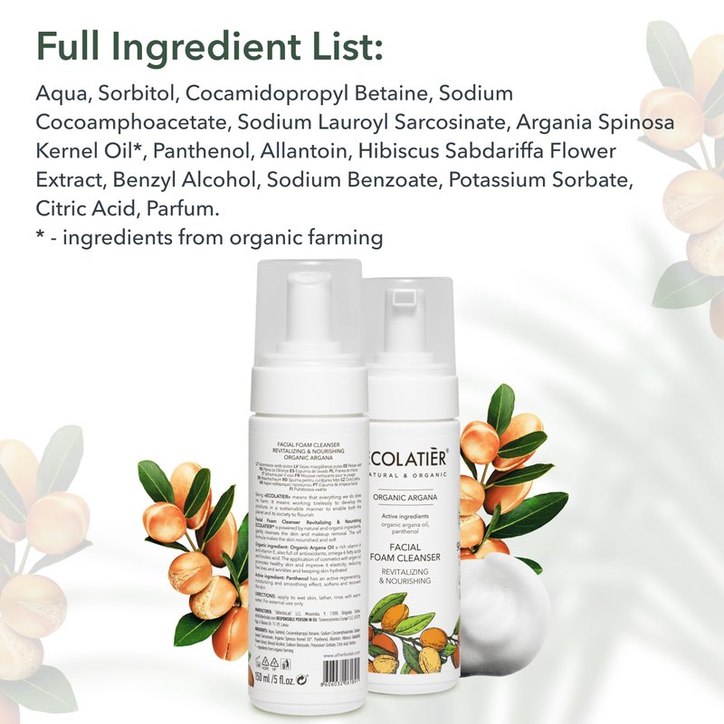 - Organic foaming cleanser: Our skin cleanser is enriched with Organic Argana Oil, known for its hydrating and anti-aging properties. It's a luxurious choice for those seeking a face wash for dry skin.