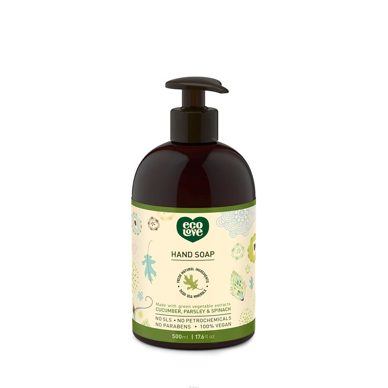 - NATURAL & ORGANIC INGREDIENTS: ecoLove Green Collection Hand Soap is free from SLS, parabens, petrochemicals and alcohol. 95% nature derived ingredients (30% organic). Enriched with natural oils, organic herbs & plant extracts and 26 essential Dead Sea minerals.
