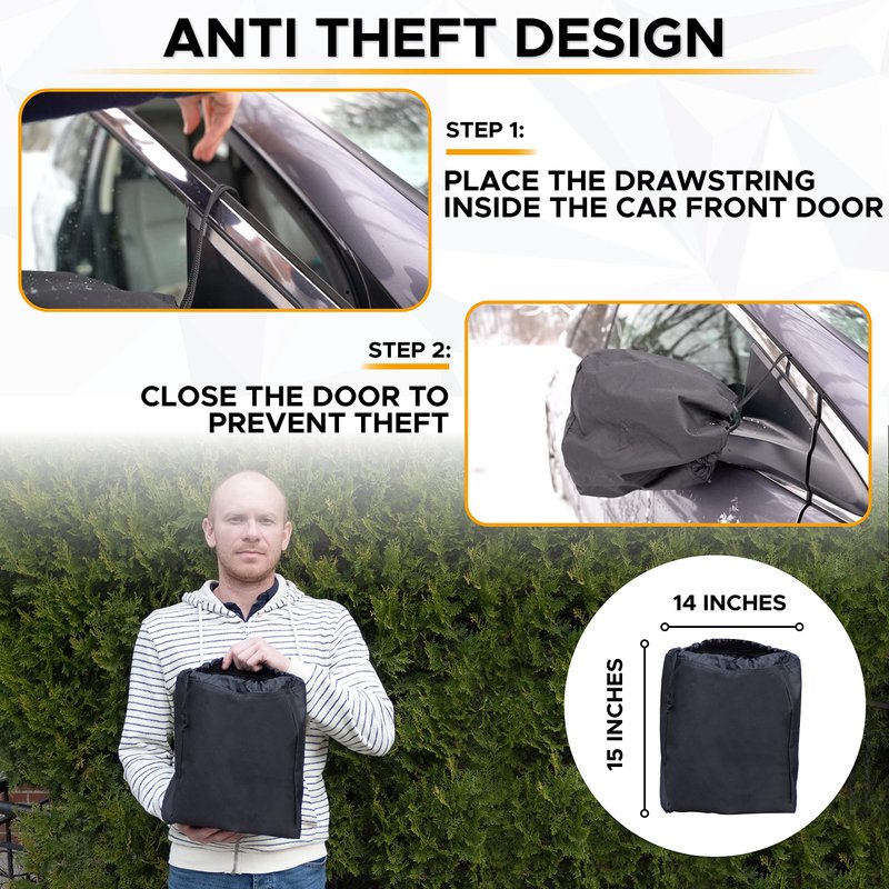 - Effortless Installation: Installation is very simple, just slide the snow cover directly to your car side mirror and tighten the drawstring. Protect your side mirror and always keep your vision clear.