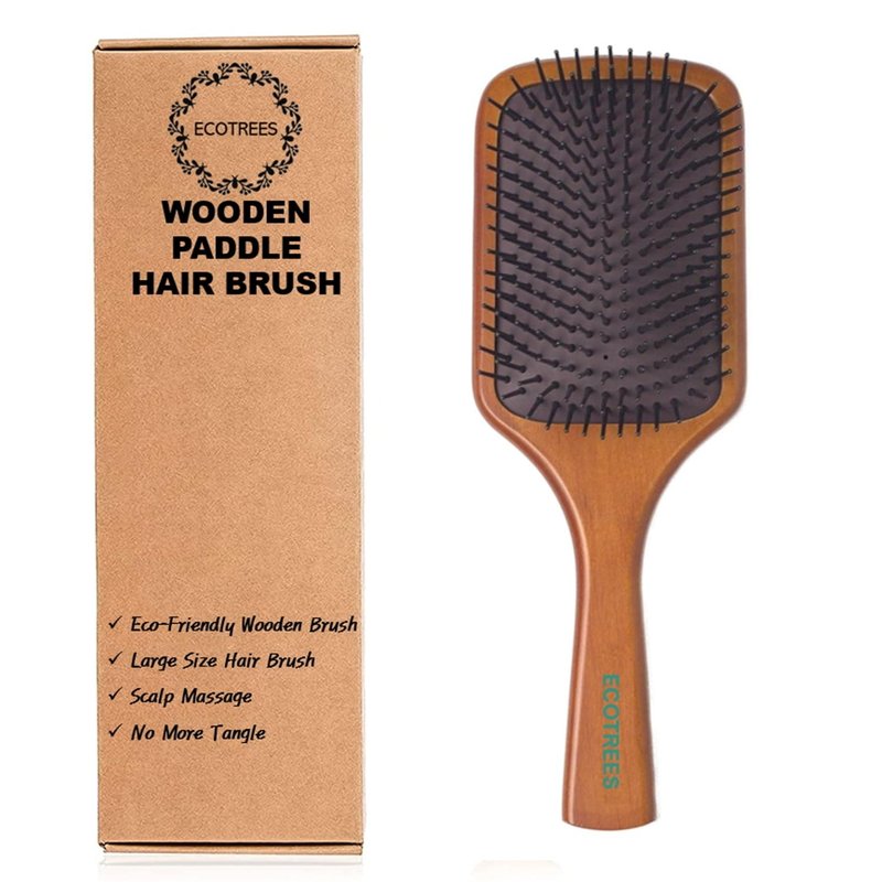 ECOTREES Natural Wooden Large Paddle Hairbrush Size : 10x 3.5x 1.5 inch Materials : Wood, Rubber