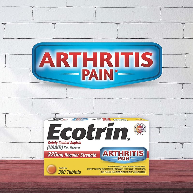 Ecotrin Safety Coated Aspirin Arthritis Pain Reliever Tablets, Regular Strength, NSAID 325 mg, 125 ct (Pack of 2)