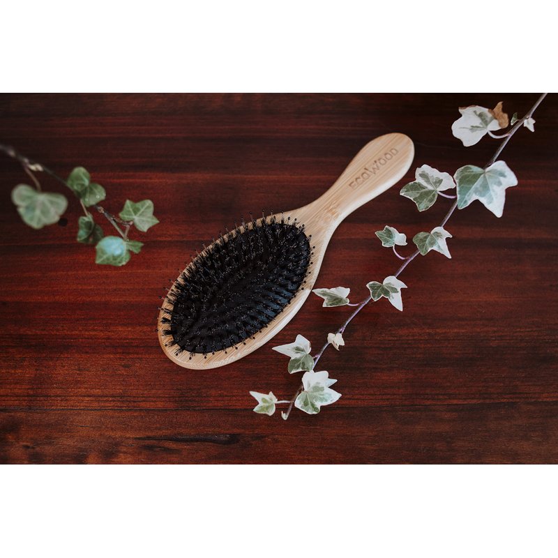 Ecowood - Bamboo Hair Brush with Natural Soft Bristles and Rounded Tip – Elevate Your Hair Care Routine!