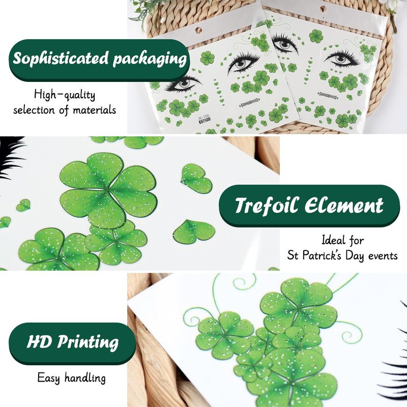 - Unique Design: St The design of Patrick's Day face patch is very exquisite, using the classic clover design, with clear patterns, bright colors, and glitter, which can attract people's attention very well