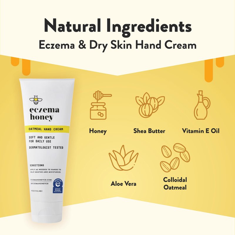 ECZEMA HONEY Oatmeal Hand Cream - Natural Hand & Body Lotion for Eczema Rash Relief - Eczema Cream for Dry, Itchy, Sensitive, & Irritable Skin (4 Oz)