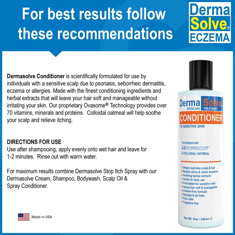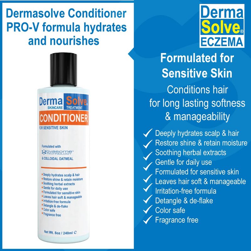 - Formulated with Colloidal Oatmeal to help protect and prevent dry itchy scalp. Dermasolve Eczema Shampoo & Conditioner will hydrate, and reduce visible redness so you can experience smooth calm skin again.