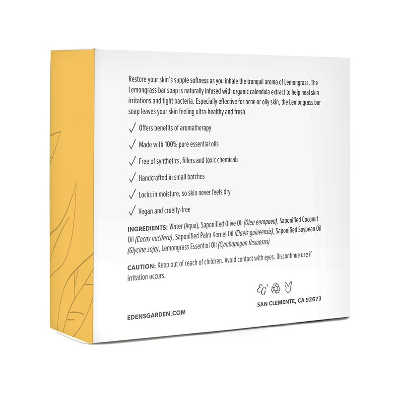 Edens Garden Lemongrass Natural Aromatherapy Cold Processed Bar Soap (Made With Essential Oils, Vegan, For Face & Body), 4.4 oz Bar