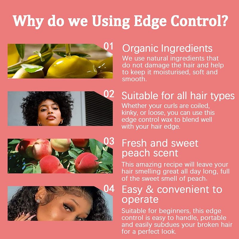 - Suitable for All Hair Types: From 1A to 4C, natural hair, wigs and braids can all use this edge control for black women to blend with the edges of your hair to complete your hairstyle.