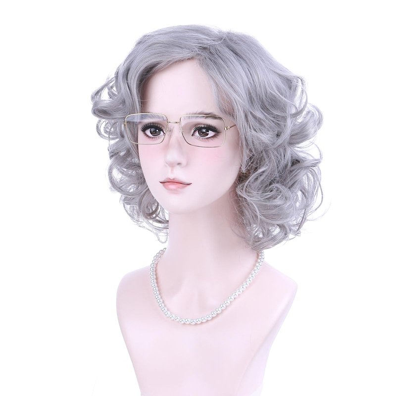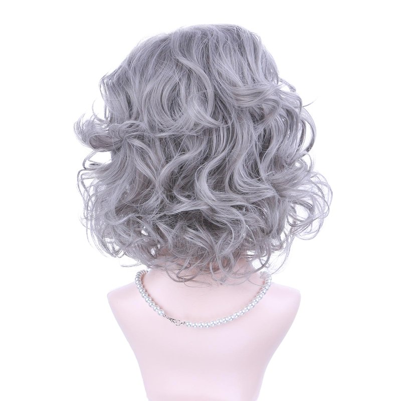 Edivd Kids Gray Grandma Granny Costume Wig Short Sliver Gray Side Part Wig for Girls Short Light Grey Curly Wavy Wig for Child 100 Days of School Heat Resistant Synthetic Wig with Wig Cap