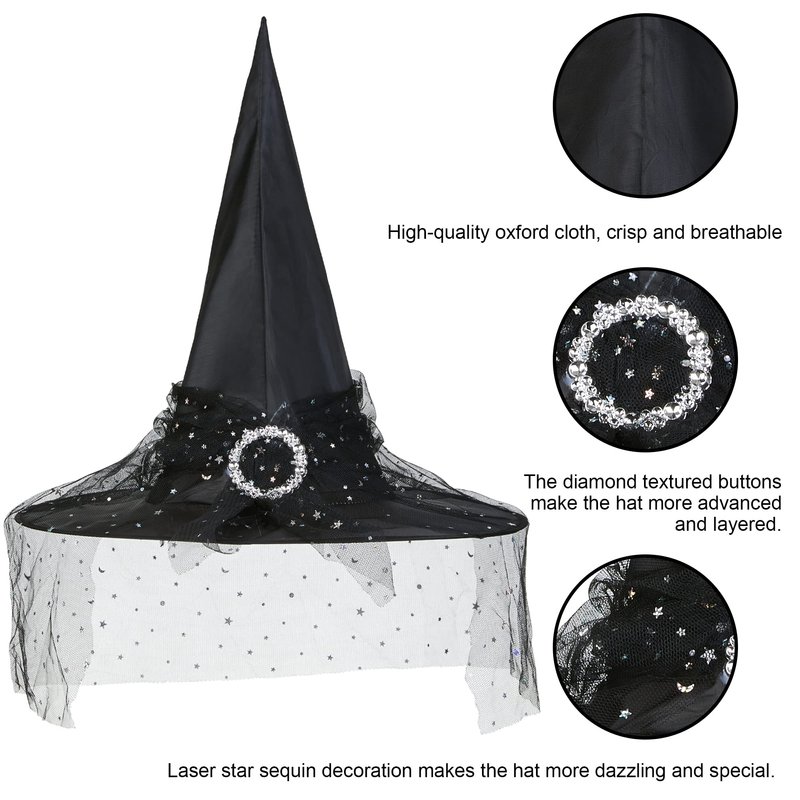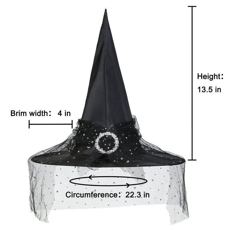 - Unique and eye-catching - Stand out from the crowd with these Halloween Witch Hats for Women. The black mesh material adds a touch of elegance, while the classic witch hat shape screams Halloween. Wear it with confidence and let your inner witch shine. Whether you're going for a glamorous witch or a spooky sorceress look, these hats are sure to make a statement and complete your Halloween ensemble.