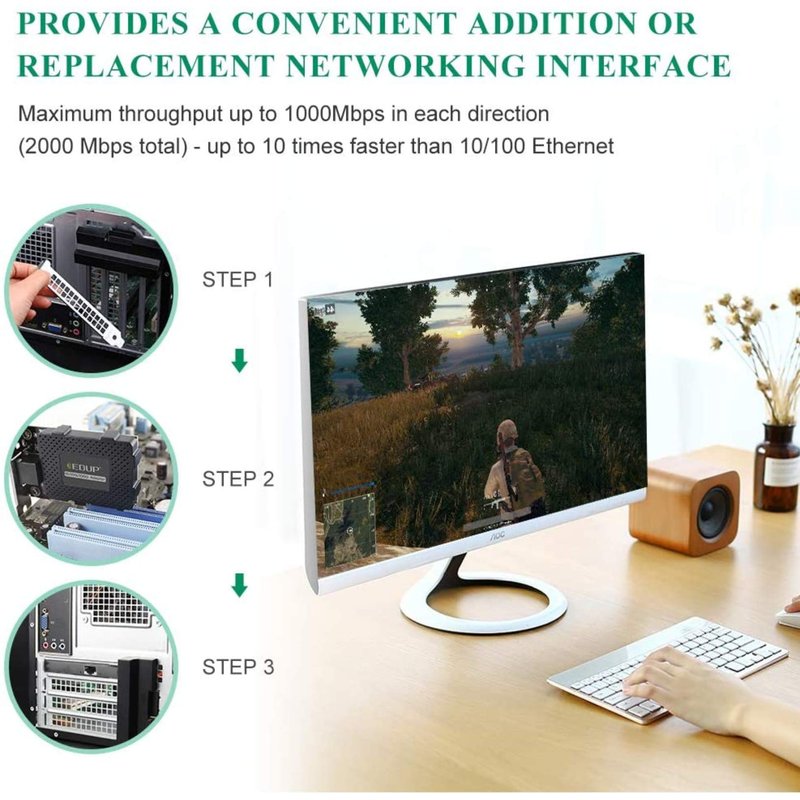 - EDUP pci-based 10/100/1000 Mbps Gigabit Ethernet network adapter card provides a simple connection to a Gigabit Ethernet network, and is fully compatible with 802. 1Q virtual LAN (VLAN) tag. And Ethernet card which Is compliant to IEEE802. 3, IEEE802. 3U & IEEE802. 3ab.