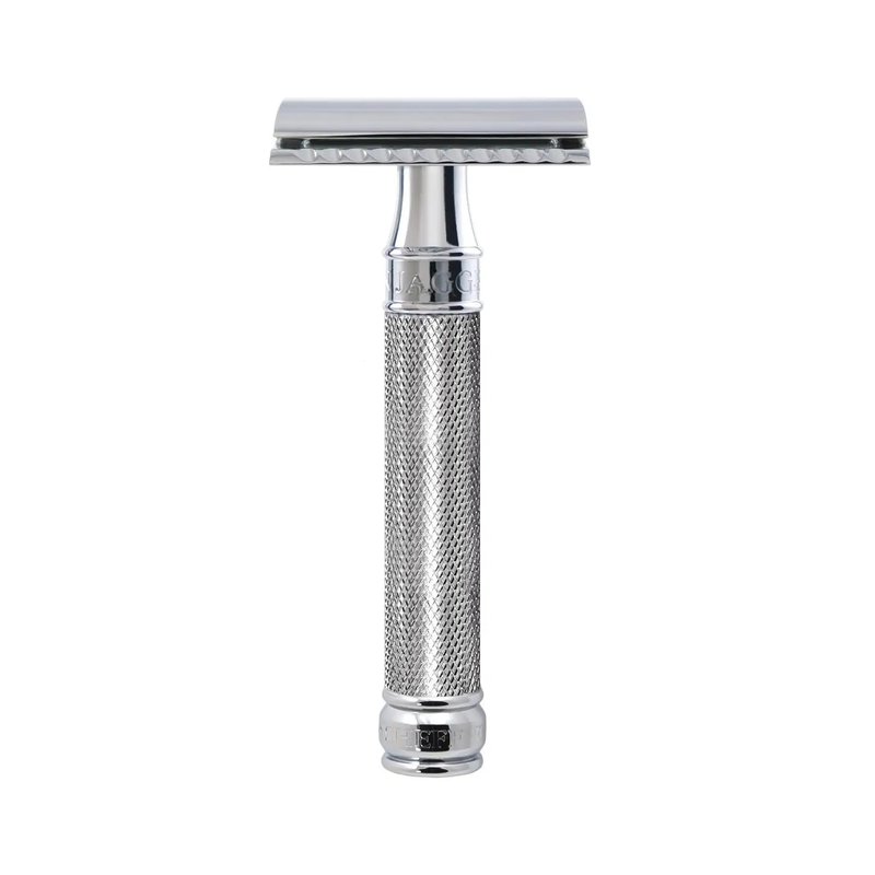 - PREMIUM QUALITY: Machined from solid brass, triple-plated, hand-polished and finished in a chrome knurled effect, ensuring improved wet grip and precision control. This classic men’s razor offers a comfortable, barbershop quality shave - every time.