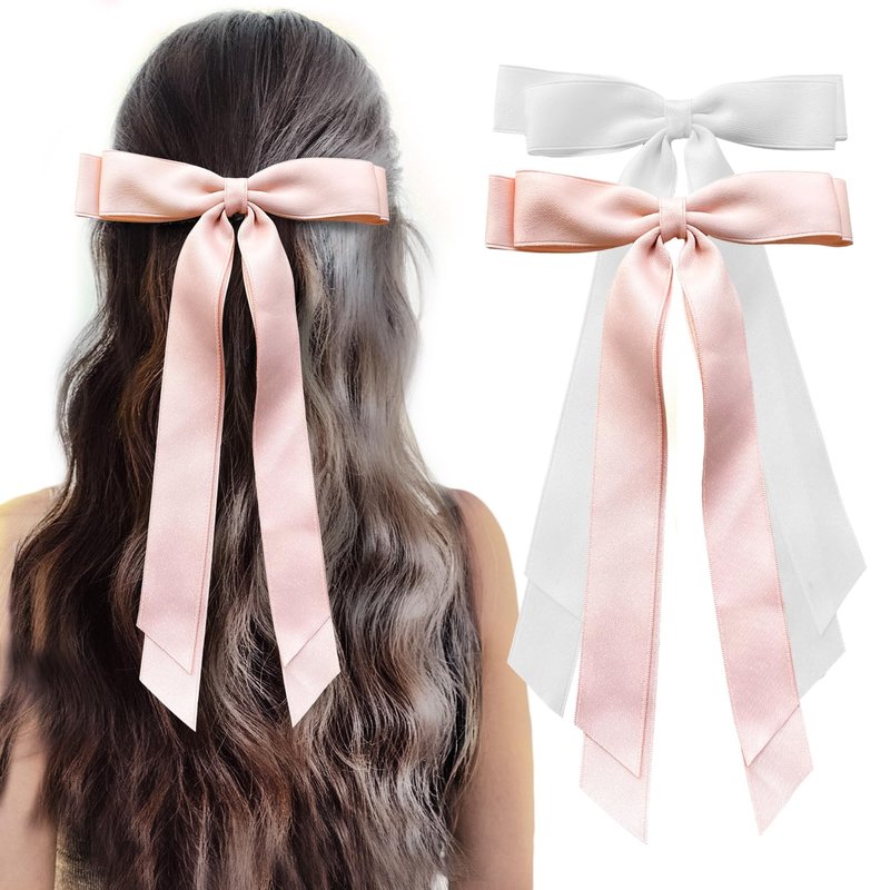 - Hair ribbon bow are carefully crafted from satin material and metal clips, which is silky soft and very textured to touch. Wearing them will add to your elegance and charm and make your hair look fuller and fluffier.