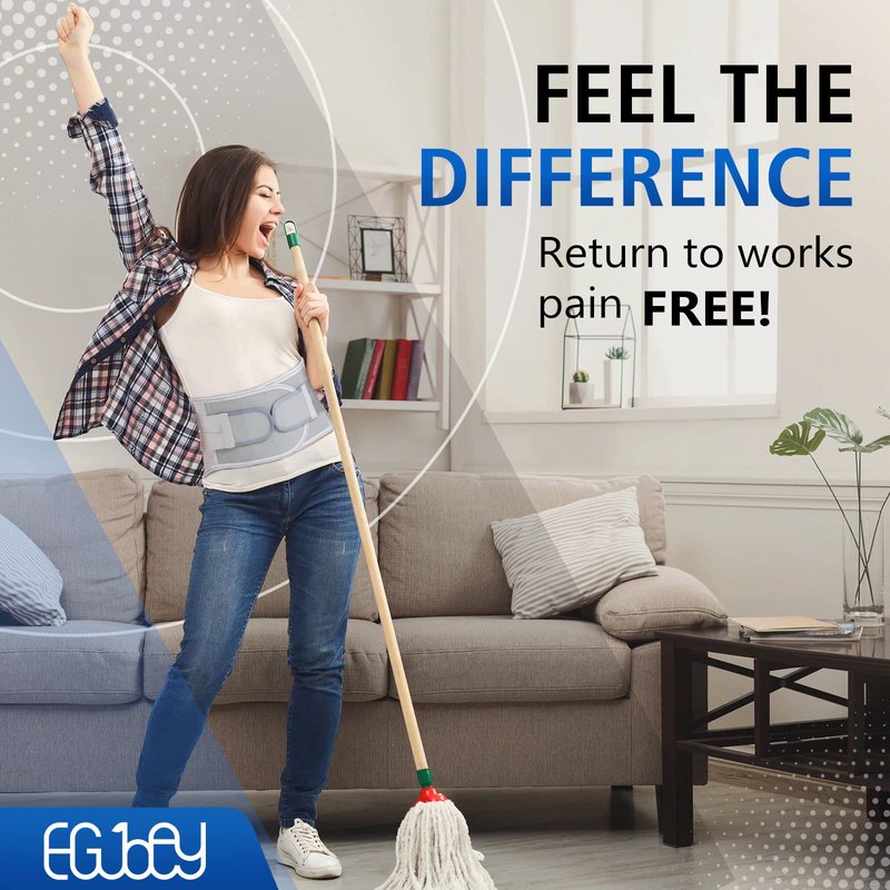 - SAY GOODBYE TO THE PAIN OF THE PAST: Back pain is common. More than 80% of people have episodes of low back pain during their lifetime. It can be frustrating when pain interferes with daily life. EGjoey back brace provides comfortable and robust support thanks to the 8 support straps on the back wrap around your belly for perfect support. Lower back support offers better balance and posture and protects our back from injury when lifting heavy objects, yard work, or doing some sports.