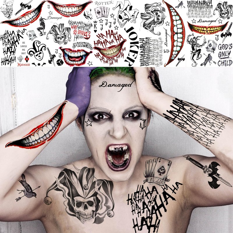 - 🍷No Pain To Have Bulk Realistic Joker Tattoos Sets🍸 Fake Tattoos For Women Looks Real and Cause No Pain And Won't Leave Any Scars. Even No Worry To Apply On Baby, Child, Toddler, Children, Teens, Teenagers, Lovers, Youth, Temporal Tattoos For Men Teens Tattoo Paper. Zombie Chucky Makeup kit set, Tatuajes Temporales Women Men Adult Kids autocolante.