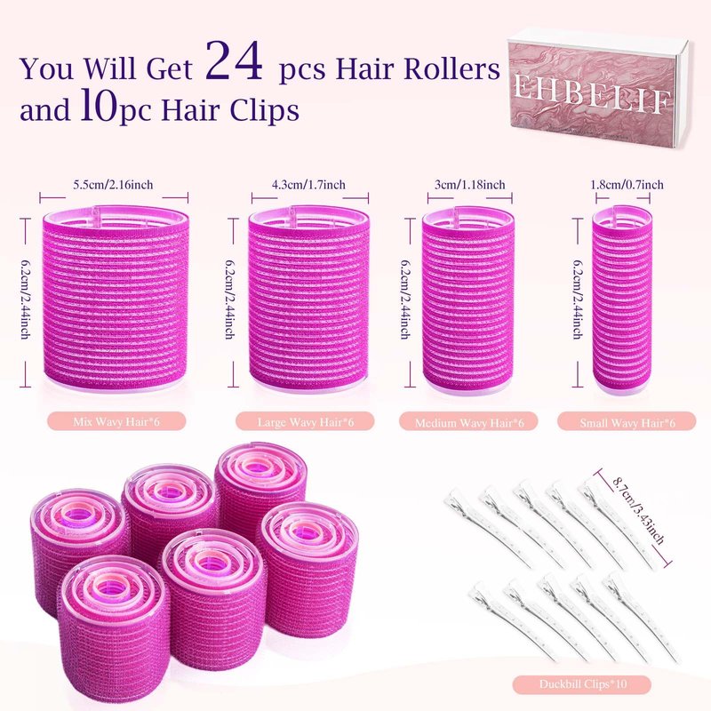 - Hair rollers for blowout look long hair includes 24 curlers, 10 sturdy duckbill clips and a storage bag. Four different sizes of curlers can create different hairstyles. You can use them to make waves, vintage rolls, air bangs, or hair tails.