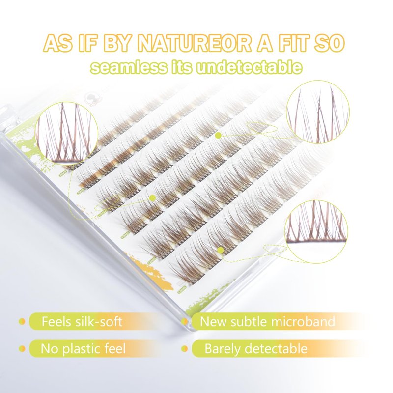 - 1: Unlike traditional black false lash clusters, brown false lash clusters offer a new color option and better echo blonde or brown hair. This natural brown color adds warmth and softness to your overall appearance, making the makeup effect exceptionally outstanding