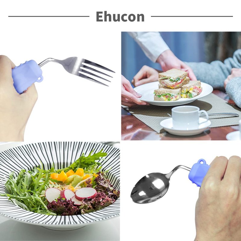 Ehucon adaptive silverware eating utensils are specially designed for many elderly people or Parkinson's patients who may face problems such as weakened hand strength, decreased flexibility, or hand tremors, making it quite difficult for them to use ordinary forks and spoons. Ehucon adaptive utensils for tremors unique bending angle helps users to eat without turning their wrists. The moderate weight of the angled utensils effectively reduces the difficulty of grasping or hand tremors for the elderly. The weighted utensils for hand tremors are made of food grade materials, which safely protect your health. Whether the user is left-handed or right-handed,Ehucon adaptive tableware provides a suitable choice, aiming to provide you with a more comfortable and convenient dining experience. And our adaptive angle spoon and fork come in four bright colors, helping to stimulate the user's appetite and adding a joyful dining experience.