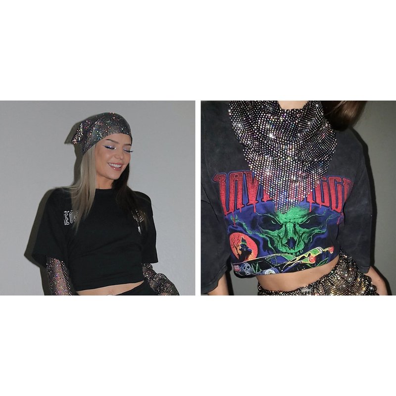 Sparkly Rhinestone Mesh Headband Crystal Head Scarf Kerchiefs Turban Party Nightclub Rave Edge Hair Bandana Wraps Body Jewelry