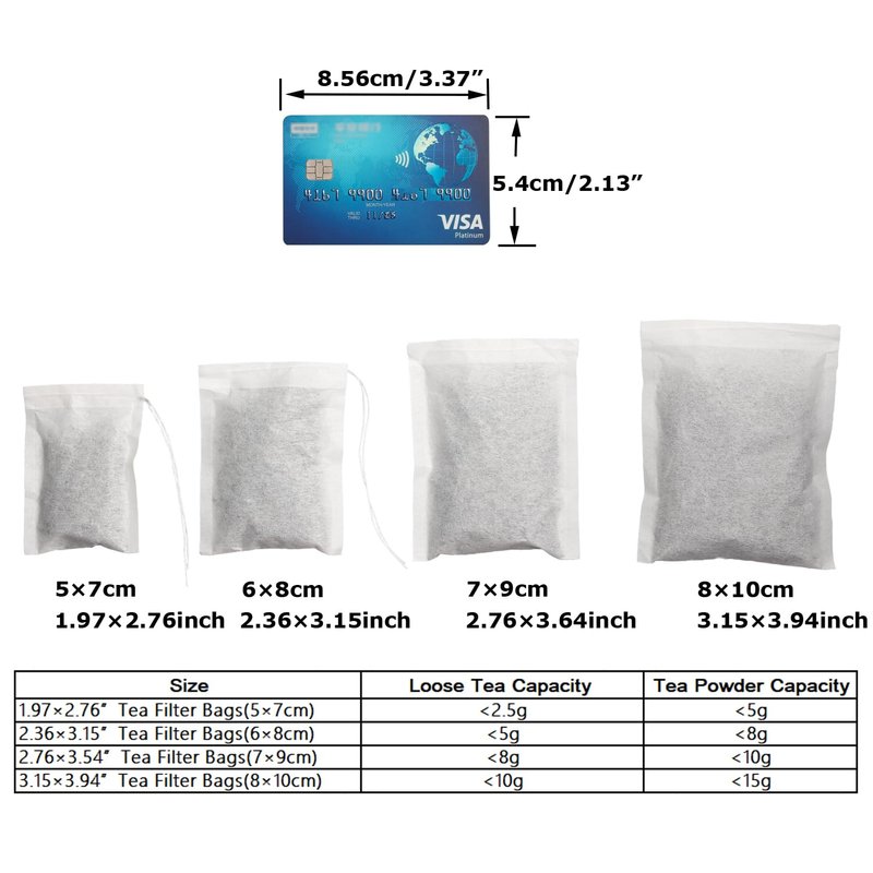 - ✔ Premium Quality : Small size: 1.97 x2.76 inch/5*7cm. Capacity for loose tea: 0.1Oz/ 2.5g. The small tea filter bag is made of 100% Natural Wood Pulp, and sealed by heat press, safe and natural for daily use.