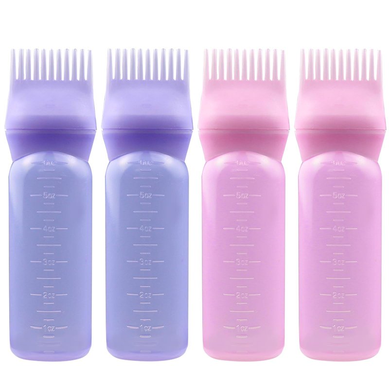 - 【value packages】This set includes 4 hair oil applicator, with 2 purple and 2 pink bottles. The bottles have scale for easy hair dye mixing and provide convenience for your hair dyeing process.