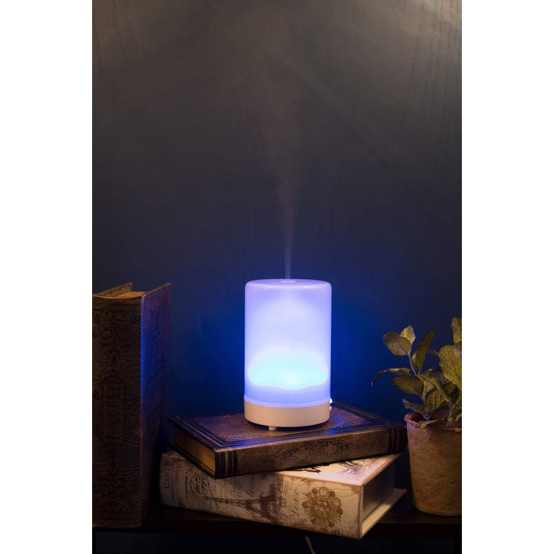 Beautifully designed diffuser; Continuous mist that lasts up to 8 hours; Automatic shut-off feature.. Refresh any room; Pour water to fill line inside of diffuser basin; Just add a couple sprays or drops of essential oils.. Setting for LED light can be used in changing color mode or can be set to one color (8 color options in which to choose); Plug-in to any standard electrical unit.. Diffuser cover is made of a classic frosted glass; Water and oil basin made of thick plastic casing; Buttons and settings safe and easy to use in pedestal base; UL product safety approved.. Whole unit measures approximately 5.75 inches in height and 3.5 inches in diameter; Ships in gift box packaging..
