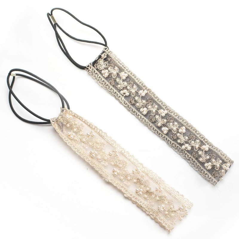 - HIGH QUALITY MATERIAL:Our Elastic Hairbands Rope is made of soft base with fancy rhinestones and beads.The shining clear rhinestones and silver-tone beads will dazzle people's eyes while ivory lace ribbon adds a touch of elegant.
