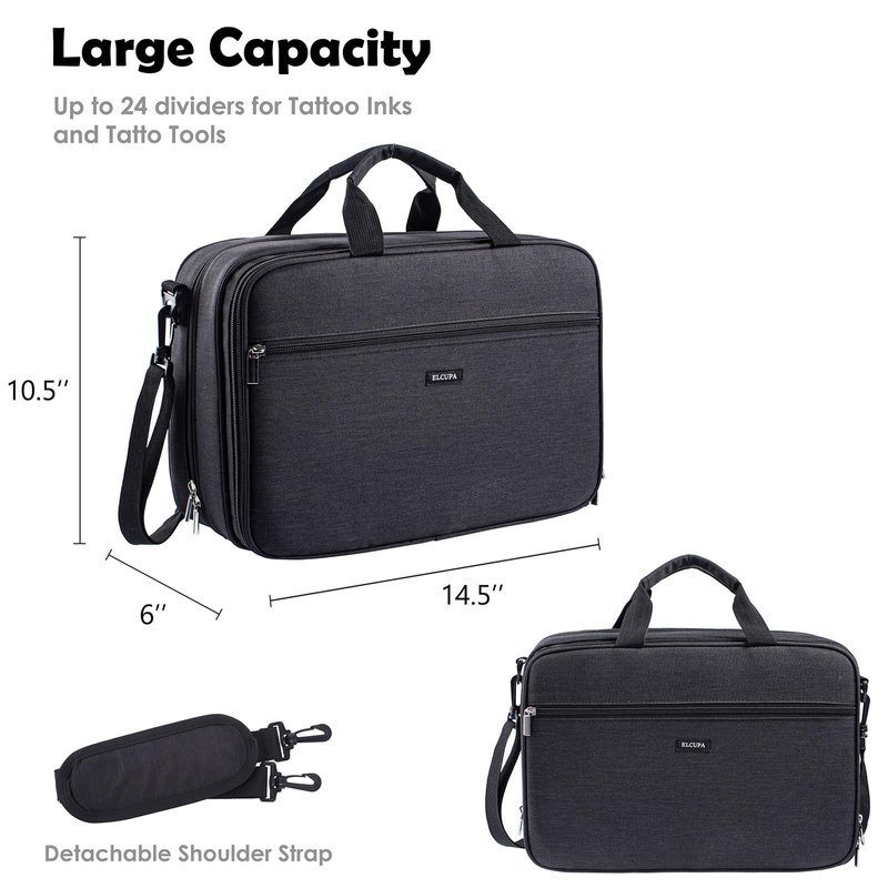 ELCUPA Tattoo Carrying Case-Tattoo Supplies Organizer-Tattoo Kit Case -Tattoo Supplies Carrying Bag for Tattoo Stencil Printer, Tattoo Ink, Tattoo Equipment, Tatoo Pens Black