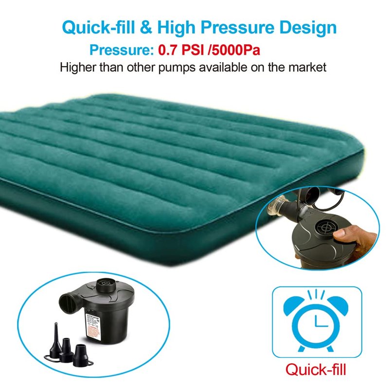 - ✅Quick & Efficient Performance: BrilliantHouse portable electric air pump with Quick-fill & High Pressure Design makes it efficiently to deflate and inflate. It comes with 【0.7 PSI (5000 Pa)】 which HIGHER than other pumps available on the market, only takes 3-5 minutes to fully expand a mattress. Enjoy your faster inflatable experience.