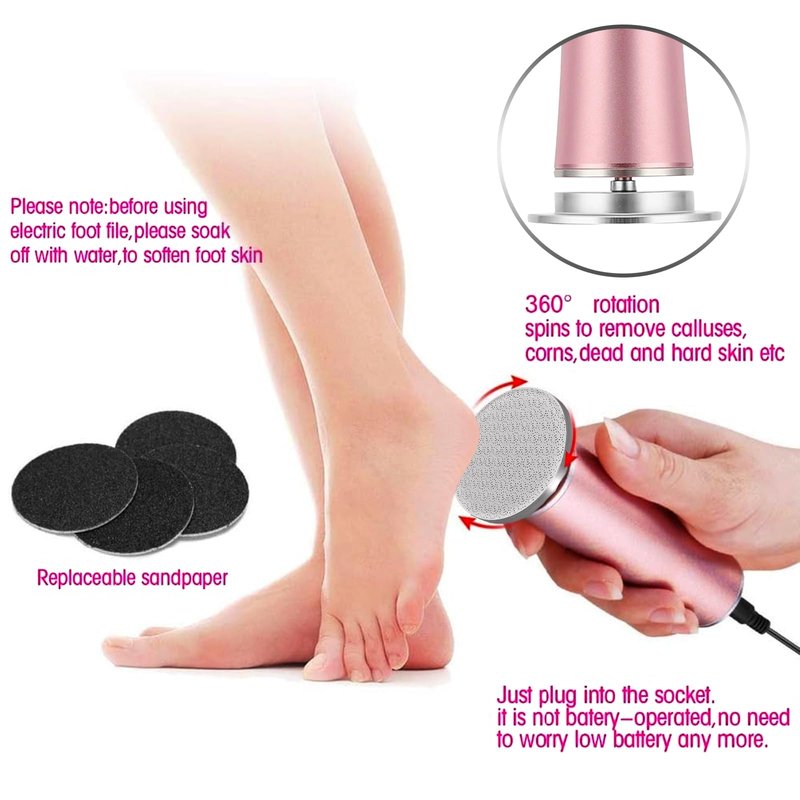 - With a powerful motor, you can freely adjust the speed from 0-800 rpm. During operation, we need to apply proper pressure to the machine, not too much.It can rotate 360 degrees to remove foot and heel dead skin, dry skin, cracked skin, corn skin, calluses. This electric callus remover machine will gently remove the dead skin and does not hurt your foot.