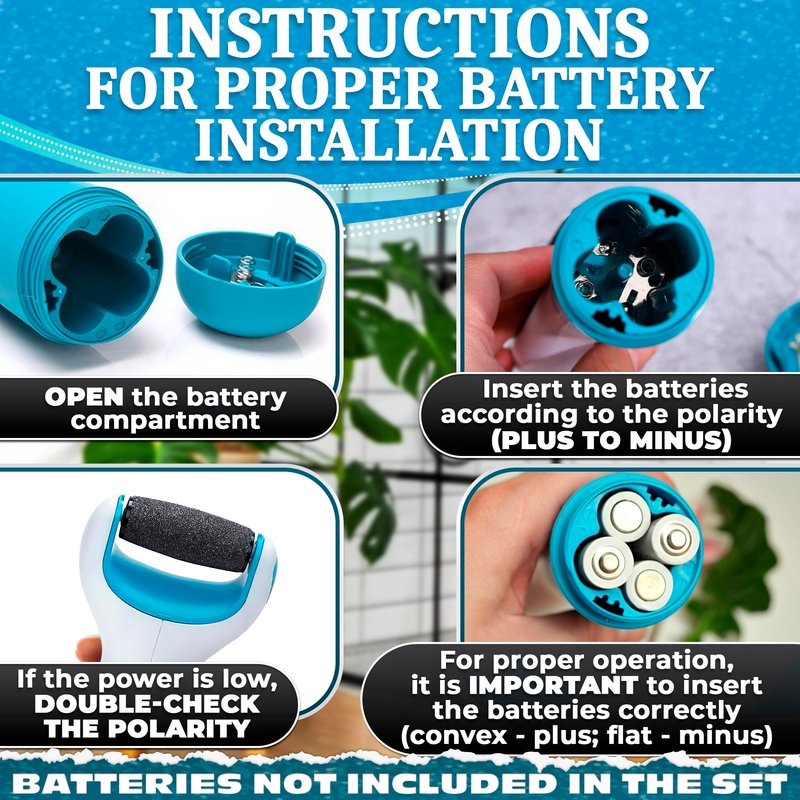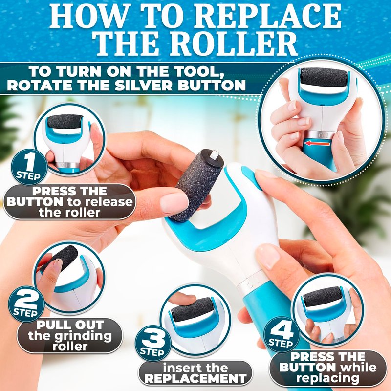- Easy to Use Foot Razor for Callus Removal: Just hold the handle firmly and turn the ring to activate the device. Then press the roller release button to release the microdermabrasion roller. This callus remover for hands is powered by batteries (Note: The Electric Feet Callus Remover does not include batteries)