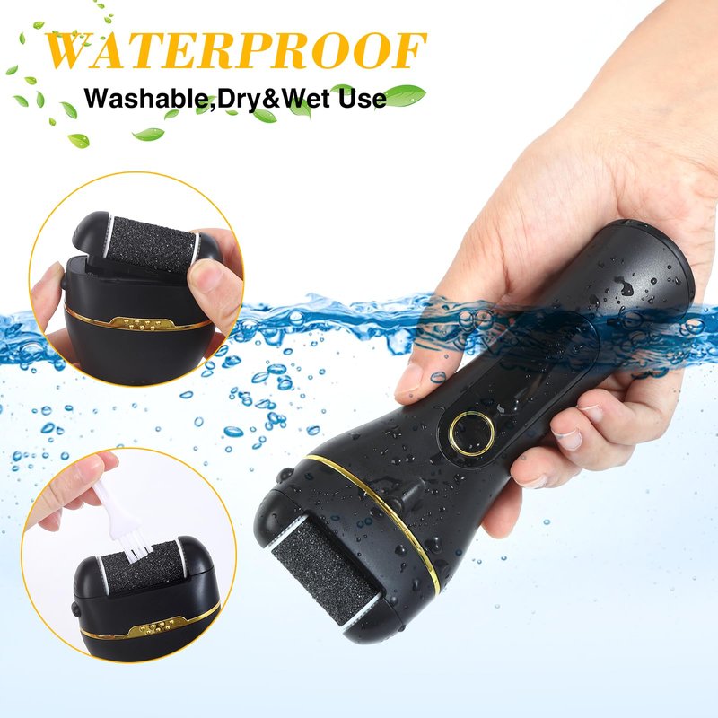 IPX6 Waterproof: The electric callus remover can be used on wet or dry feet, and rinsed under running water after using.