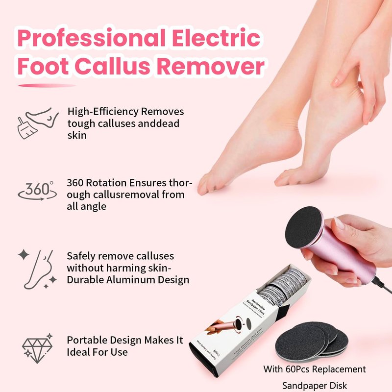 - 【60 Pcs Replacement Sandpaper Discs】: Our electric foot callus remover comes with 60 replaceable sanding pads without the concern of running low on supplies