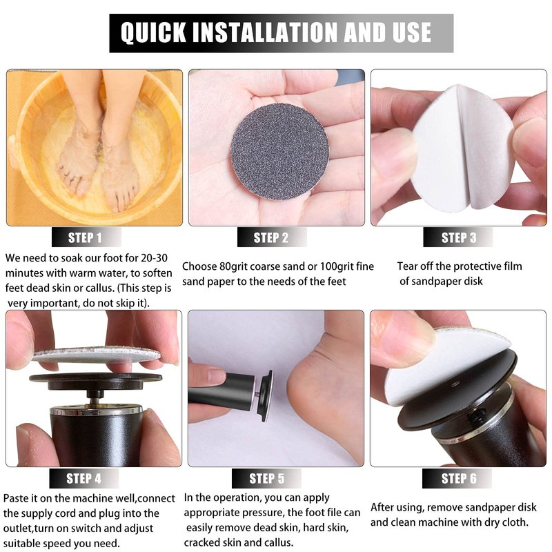 360ยฐ rotating to remove foot heel cracked, dry, calluses, dead skin ,low noise and vibration for smooth comfort grip and long-time operation.