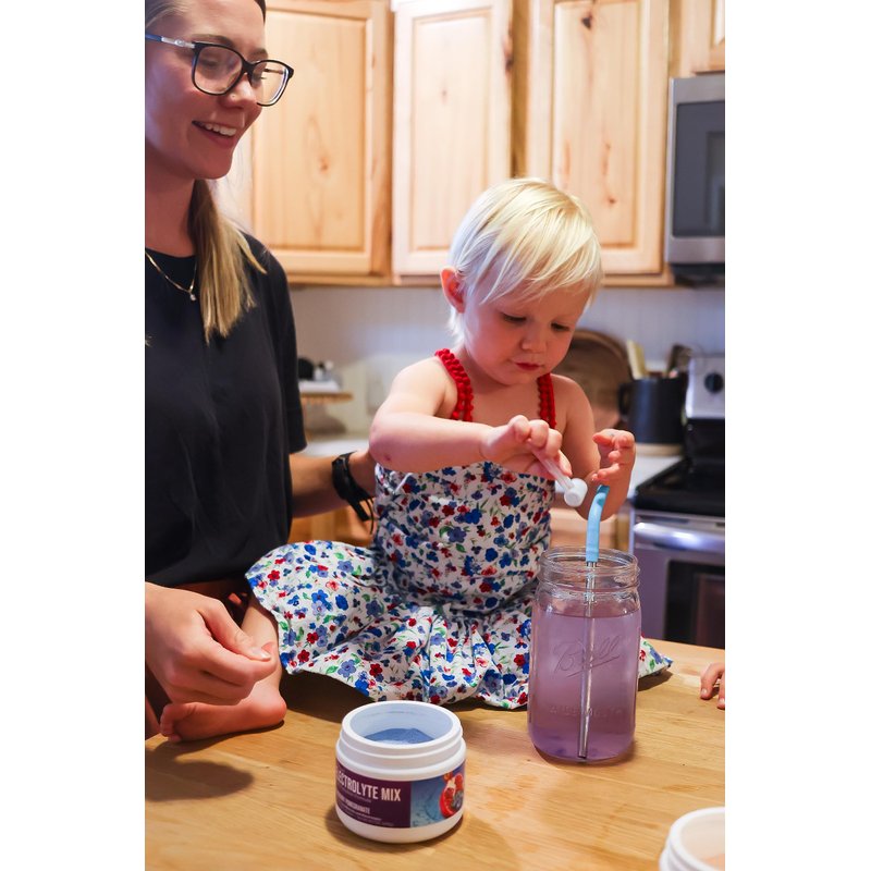 - Powdered electrolyte formula that mixes with water for FAST and EASY absorption.