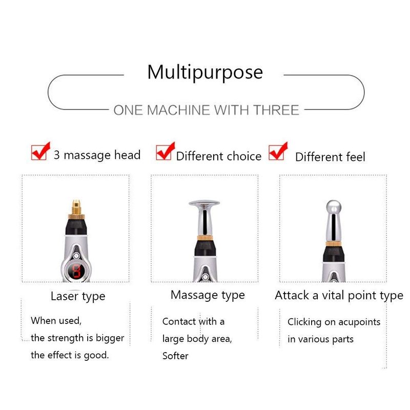 - Low Voltage Massage Therapy: Electric Meridians Acupuncture pen, no pain, no needles easily focus on pain areas, stress relief, relaxation and adjustable intensity controls.