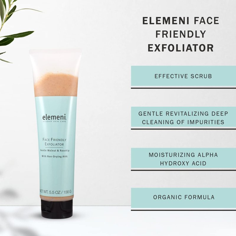 elemeni Skin Care Face Friendly Exfoliator - Organic Face Scrub for Men and Women | Facial Cleanser & Revitalizing Deep Cleaning Face Mask with Moisturizing Alpha Hydroxy Acid | 5.5 OZ Vegan Friendly