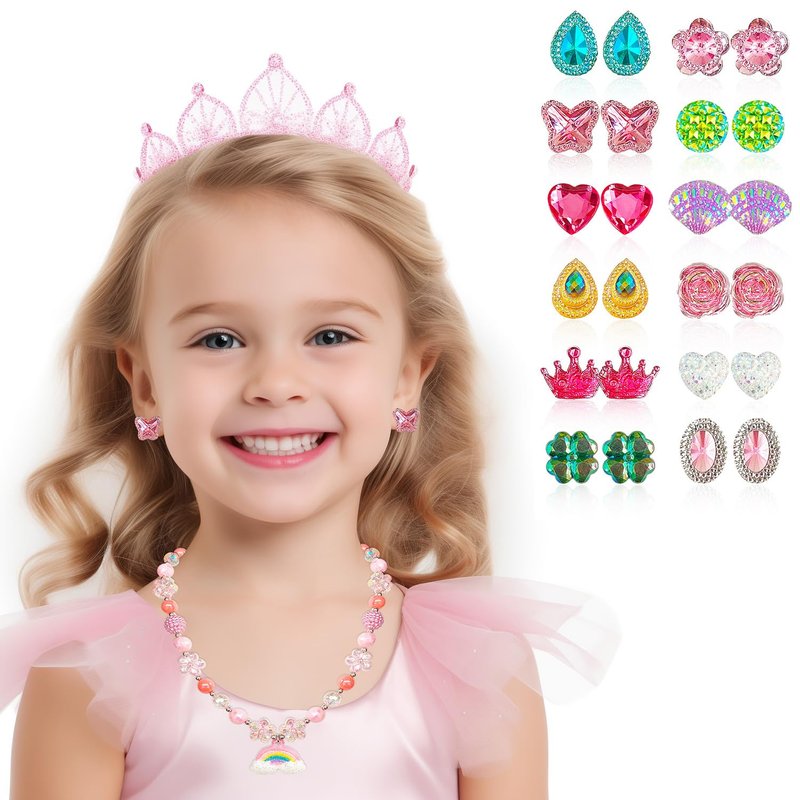 EleMirsa 24 Pairs Clip On Earrings Little Girl Party Favor Princess Clip on Earrings Dress Up Pretend Play Earrings for Little Girl Kids Toddlers Jewelry Set