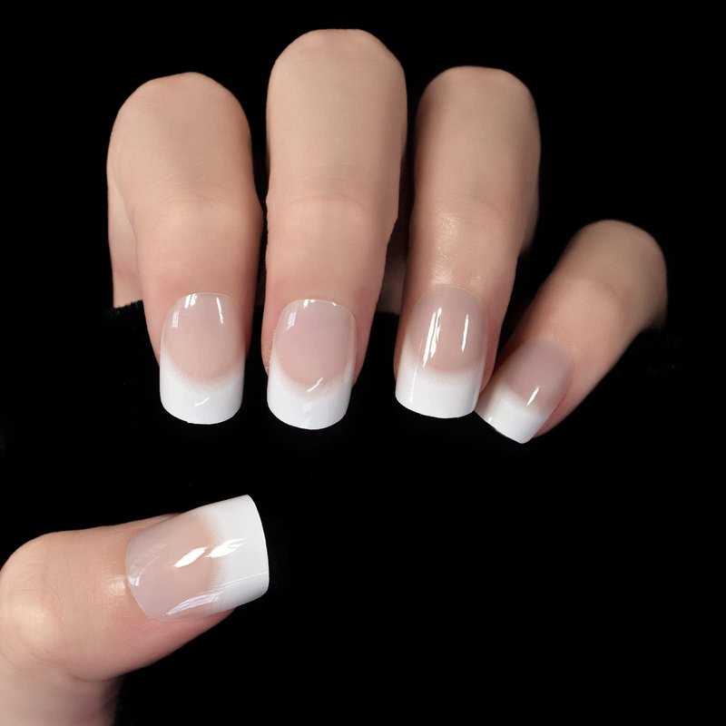 - 1. About the nails- Short Squoval Shape Press on Nails,Natural Nude white French Fake Nail Tips,make you more charming.
