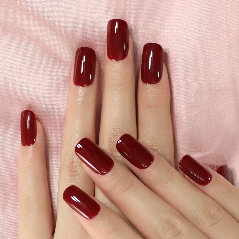- 1.About the nails-Medium Long Square Press on Nails, Glossy Dark Blood Red Luxurious and Elegant False Nails, Manicure Salon Faux Ongles Fake Nail Tips, make you more charming.