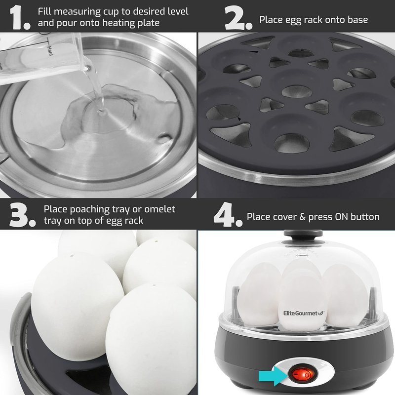 - VERSATILITY: Whether pairing with avocado toast or preparing deviled eggs for a potluck, the Elite Gourmet Easy Egg Cooker is an all-in-one egg boiler, poacher, scrambler, omelet/veggie steamer, and more.