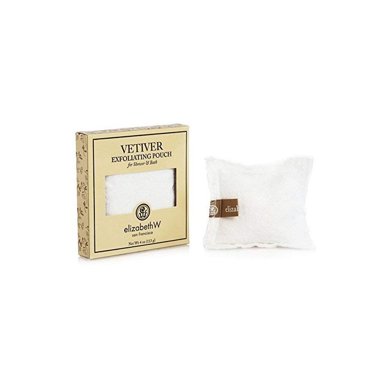 If you love the healthy and therapeutic effects of bath salts on your skin, but don't have the time to soak in the tub all that often, you'll love this innovative shower salts pouch from Elizabeth W. It features soft cotton terry with exfoliating salts inside, and it will not only gently exfoliate but also stimulate circulation. The salts and their naturally occurring minerals will help revitalize the skin. Of course, you'll enjoy the fragrance that is released when used. The vetiver signature scent is earthy, woody, and confident. It is an original creation of heavy vetiver, balanced with light, citrus tones and green tints of bergamot from peels of nearly ripe fruit. Made by elizabethW in the United States, this pouch has 4 ounces of bath salts. It comes in a charming little gift box, as shown. The ingredients are as follows: Sodium Chloride, Sodium Bicarbonate, Fragrance (Parfum).